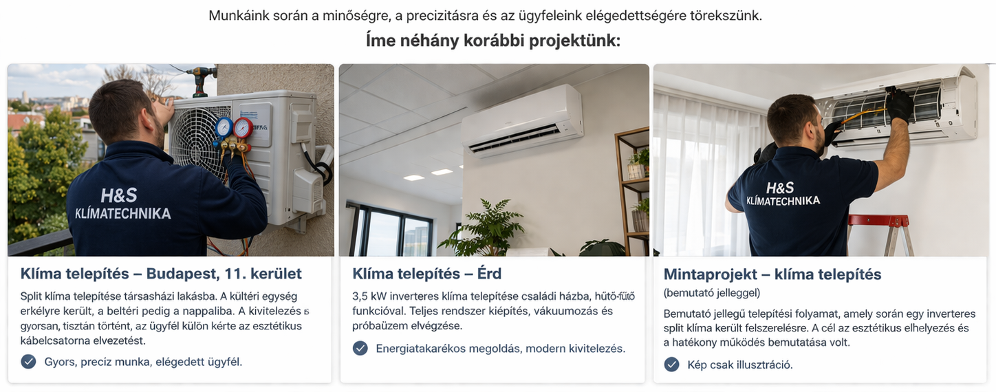 Vállalkozásunk megbízható, professzionális szolgáltatást nyújt klíma beszerelés, klímaszerelés és klíma karbantartás területén. Ügyfeleink elégedettsége a legfontosabb, ezért minden munkát precízen, szakértői alapossággal, a gyártói előírásoknak és az energiahatékonysági szempontoknak megfelelően végez.